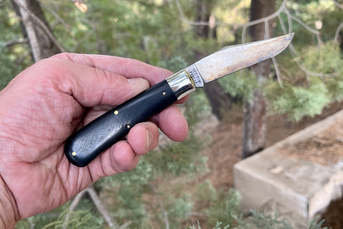 I won one of those on the bay once, but got it too cheap and lost the money and the knife in a baffling series of communications.Today's carry is a Gerber Silver Knight, an Al Mar designed knife manufactured for Gerber by G Sakei in Japan. The steel is Hitachi Ginghami No. 1. Covers are "zebrawood" (resin infused wood). Always a delight to carry.