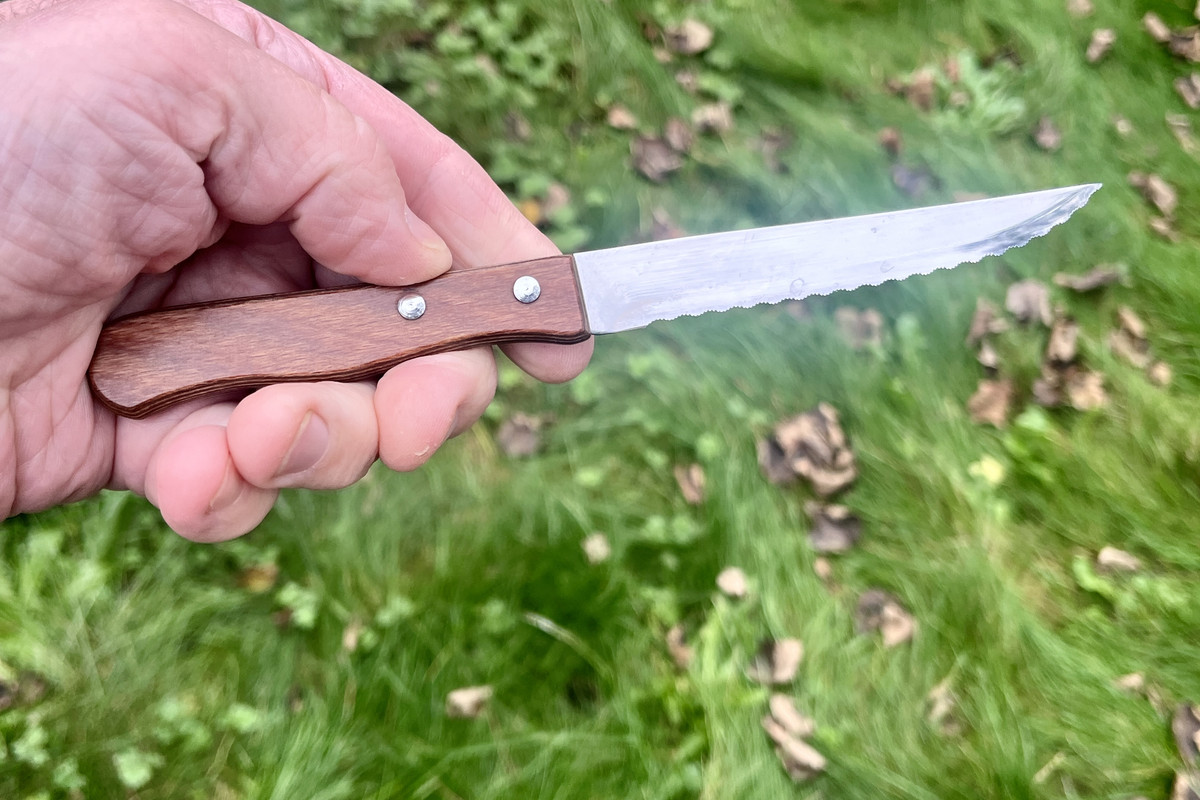 I have also been using the steak knife from his shop which it works on tomatoes,cutting buns and the like as well.