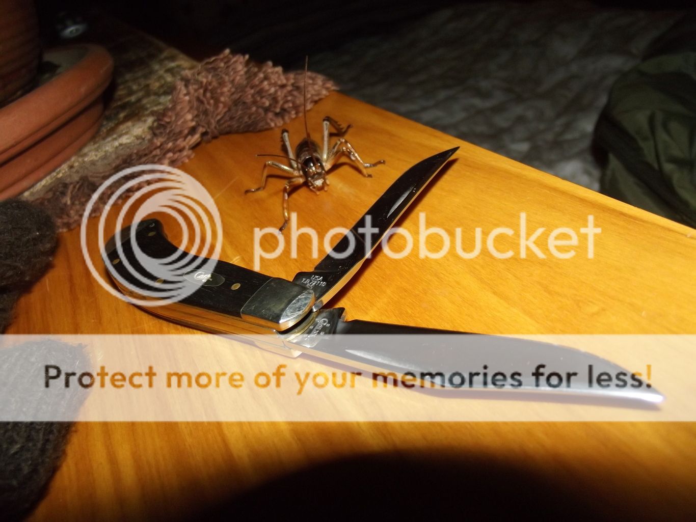 Okay guys,sorry for the disruption to your normal viewing....Thats not snow its a woollen rug,and the critter is a NZ bush WETA..He attatched himself to my hat while i was cutting firewood and i didnt know he was there until i got home...they are prehistoric insects and grow quite large...googlefu NZ WETA............FES
