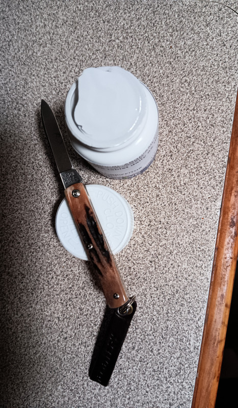 Today, my Emerson Horseman. I have numerous Benchmade knives, but this one enjoys finding its way to my pocketHaving ended the experiment and going back to my sinfull ways as an incurable knife knut, I have my daily rotation with me. In addition to my ever present Wenger SI in its belt pouch with the LED light, I have my old yellow peanut back in my right pocket. My classic is back on my keyring, and I feel like all is back as it should be. And in memory of my dear old Uncle Paul, I even tucked a very old Christy knife in my tobacco pouch, just in case.
