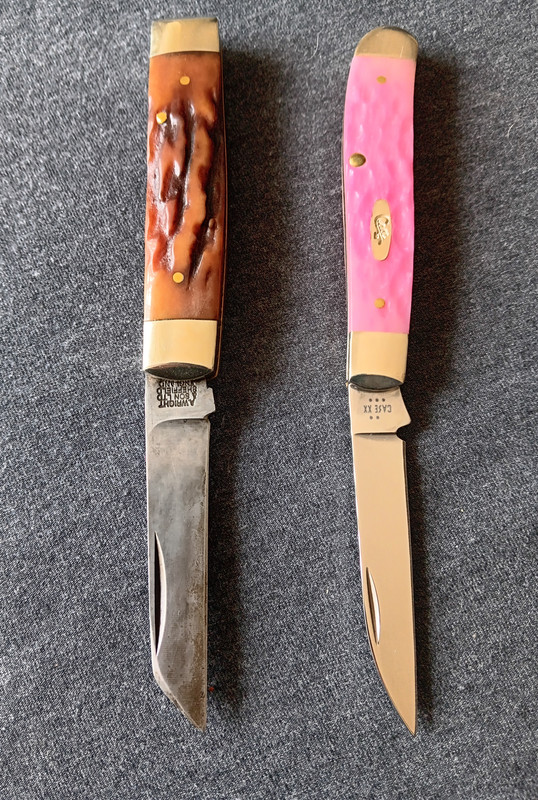 Wow! She has great taste IMHO, since the x347 is my favorite Case stockman (except for sowbelly), and I got myself a 6347 with those quad-lined bolsters for my 70th birthday a few years ago.That is a 3 spring 47 that she picked up a couple years back. We had taken a family trip to the Arkansas Ozarks, and on the way back stopped at a large Case dealership in Missouri. She was very pleased that she got to pick that knife out of the hundreds that they had for sale. She knows that I often carry a stockman, so she really likes carrying a knife that "has the same blades as yours". It has been her favorite knife since she got it.