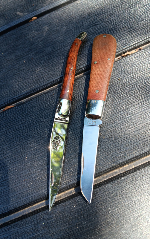 Steady rain here today so it's a lazy day ahead. "Abby" the Hoarder doesn't like the rain but I gotta give here cedit - out she goes when it's time to go although no further than the gravel at the bottom of the back porch step. Slipped this Otter - Messer Anchor Knife in my pocket this morning. Sausage and eggs over easy for breakfast.