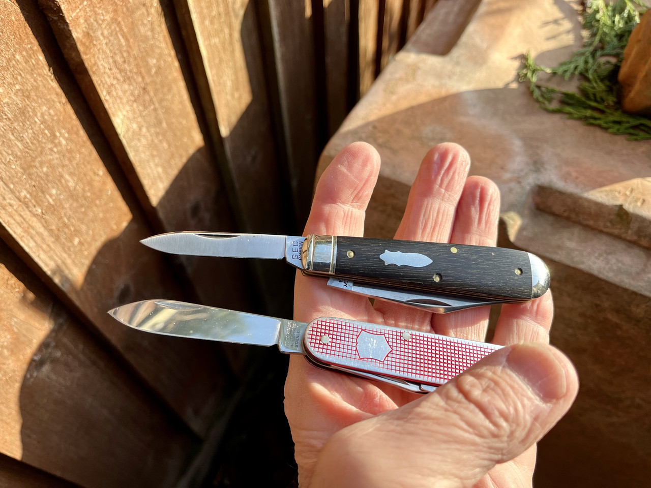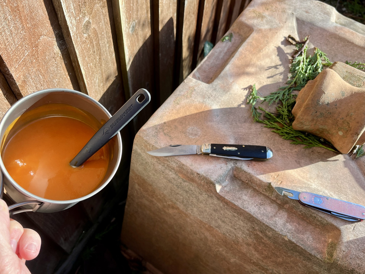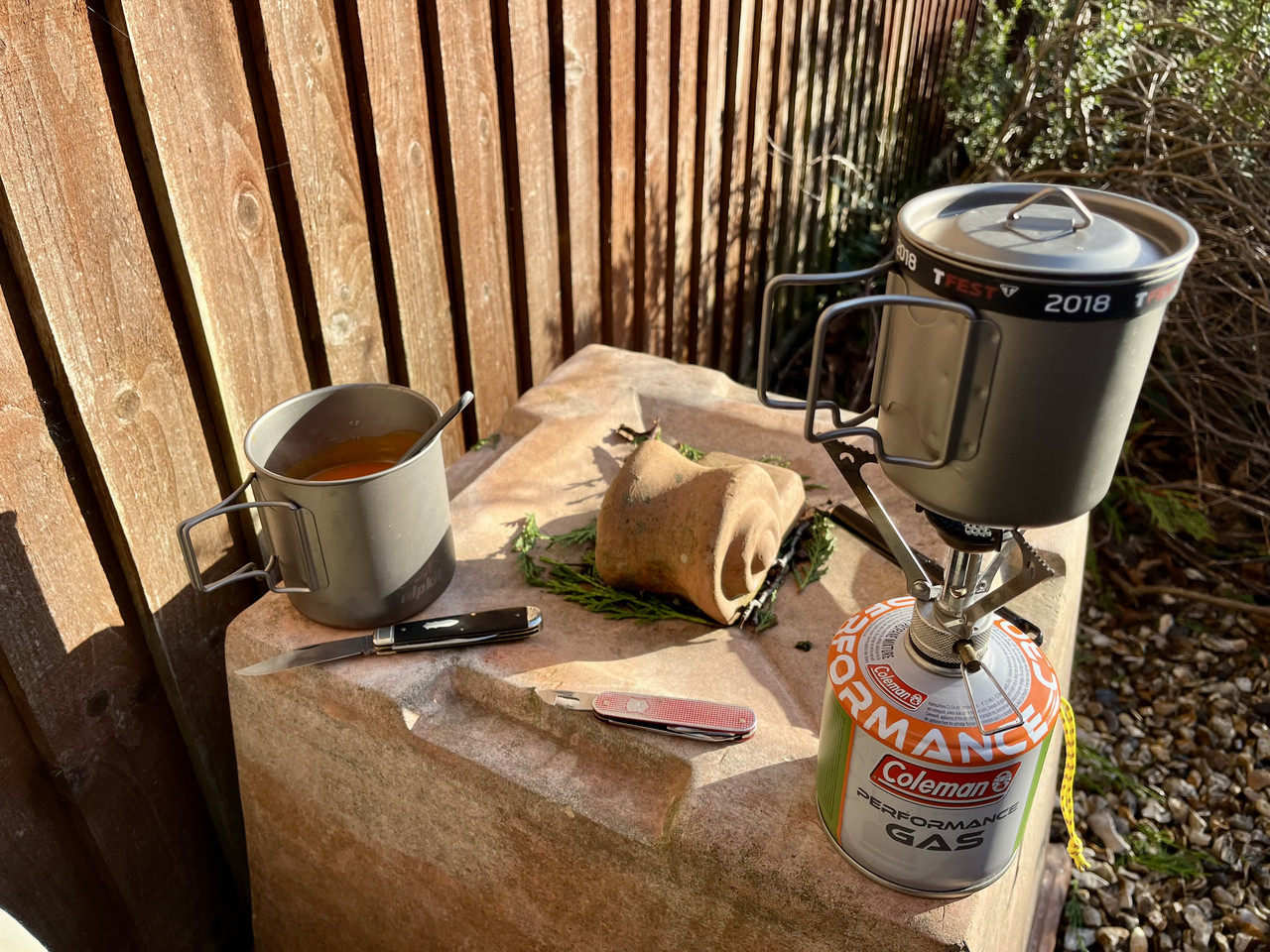 Nice knife choiceA little bit of Sun in my garden so I took my 77 and cadet out along with my outdoor cook set.