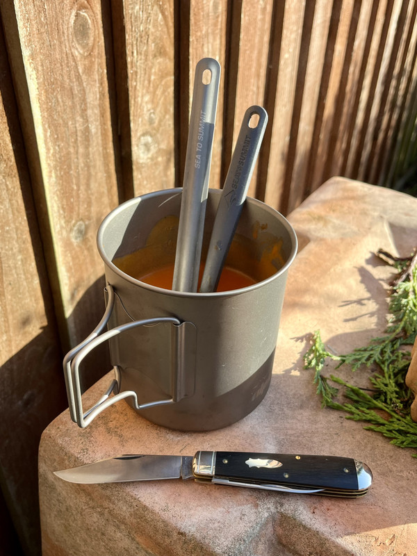 Some new bits to try out,a new titanium cook pot which works well and a electric lighter that also works well.