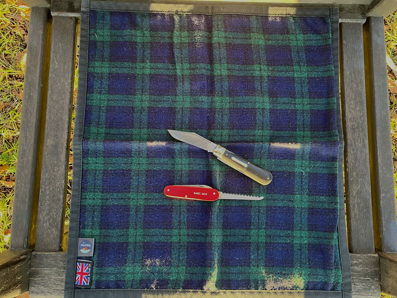 Along with me came the one and only HJ and my small SAK Lumberjack,plus the first of the excellent Harris tweed sit mats I bought years ago (I have 4 now).