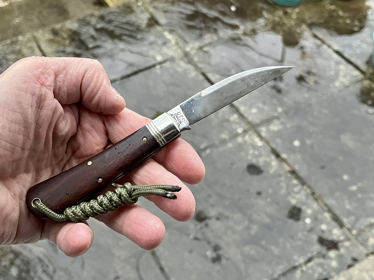 I am concerned for the sensitivities of my fellow porchismos. So to alleviate any distress caused by my totin the same knives day after day, ALL YEAR (so far), I always take a fresh photo for you. You're welcome.