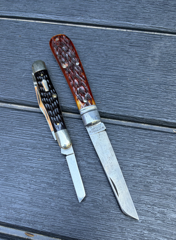 It appears we do, my friend!! That ole gnarly stag is amazing on your Hunter(I think?). Aged covers like these cant be bought now-a-days. Thanks for posting them!!Nice group of knives!! We share a taste for them!!View attachment 3085973