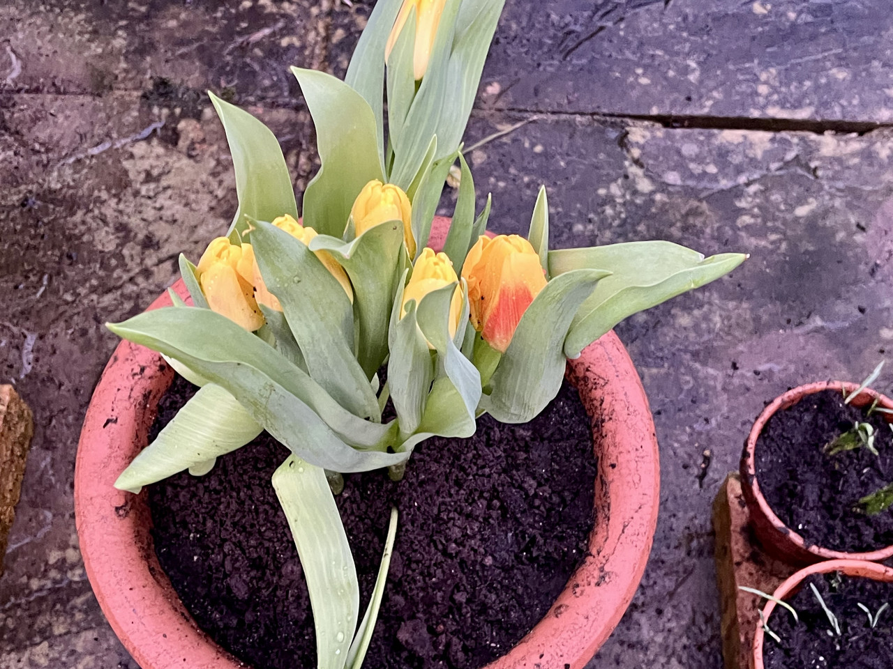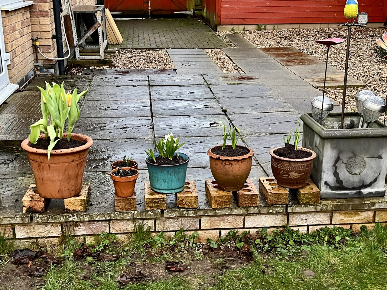 Planted Tulips that flowered very soon then planted some smaller hardy daffodils in the border and pots (the lady recommended).