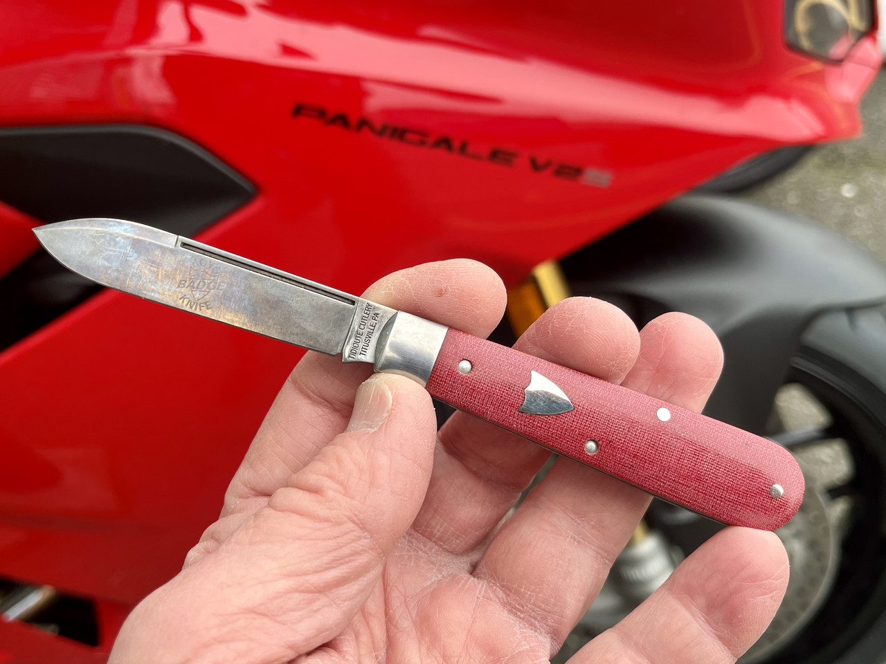 I took a bunch of outdoor pics and not a one of them came out good. I usually have better luck outside than inside when it comes to pics, but I guess there was too much sun I didn't account for. In any event they all washed out so here's an inside pic of the Texas Jack I had in pocket while running errands.