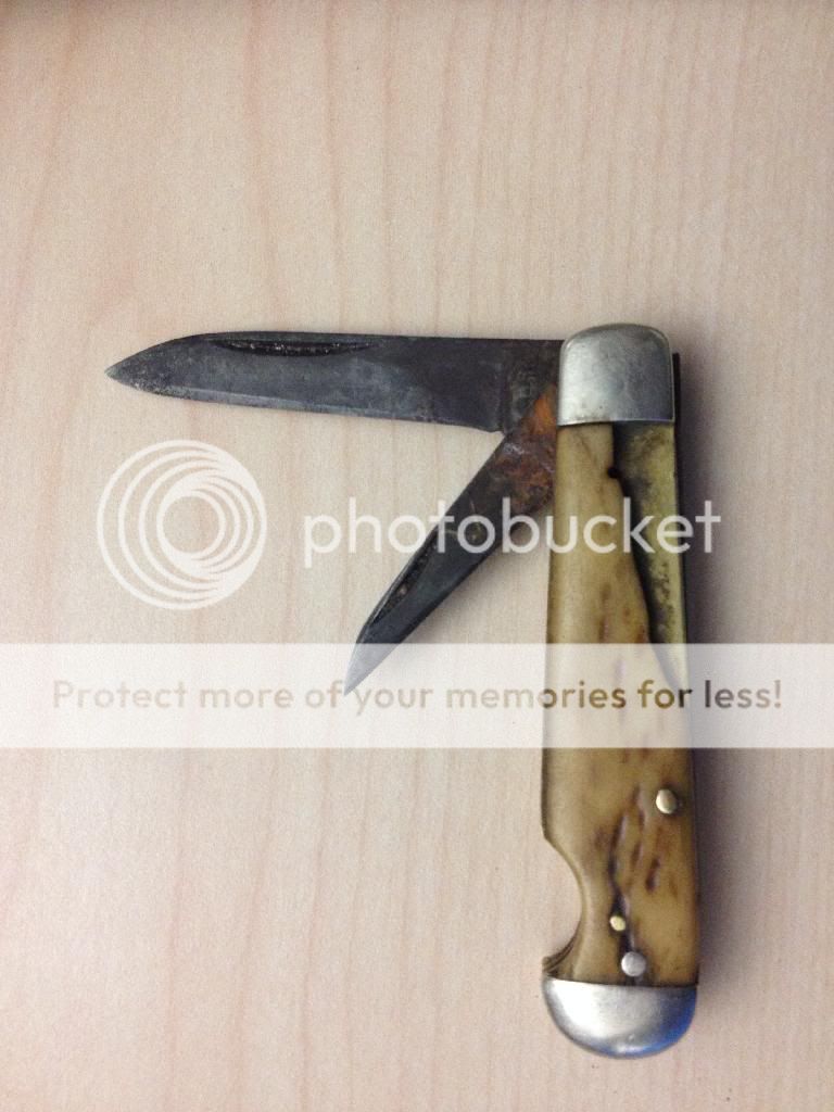 This is an old Imperial she had with her today. Despite the well sharpened blades and broken scales, it's fit and finish seem almost equal to any GEC knife made today. She prefers it despite its rust and dings, because her uncle used it for so many years: a connection to him that has transcended death.