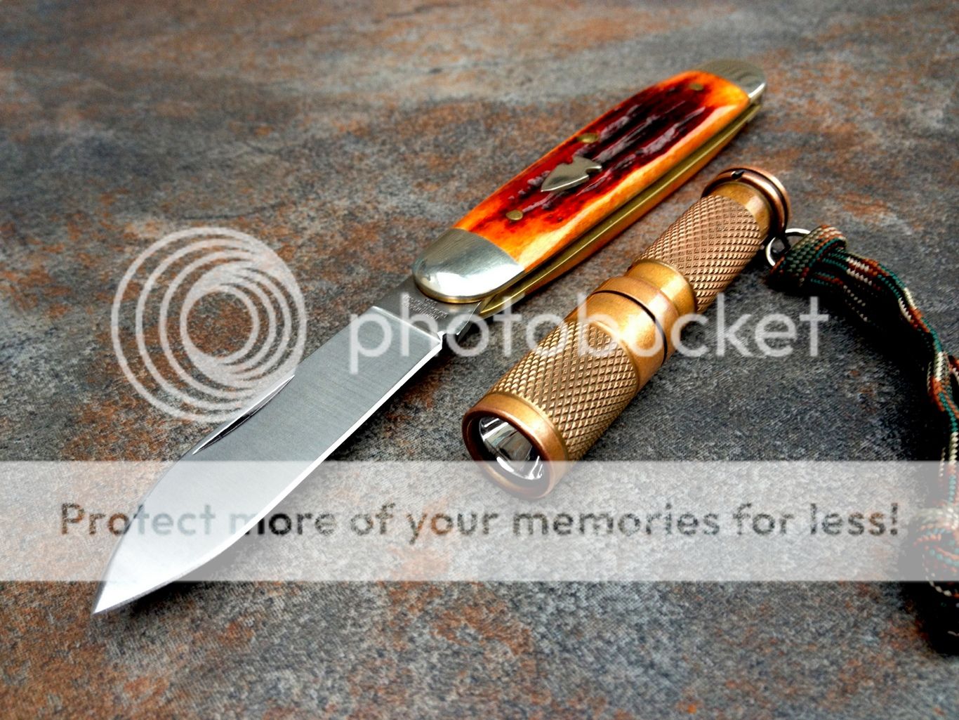 And what's the scale material on the clasp knife? Looks tough as nails. Nice moment by the river too.