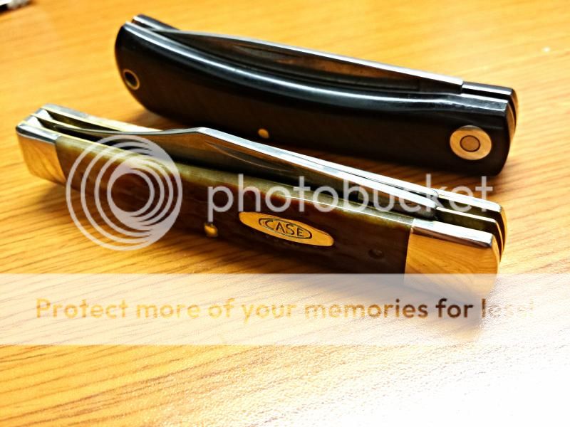 Nice photos today guys! No wooden Wednesday representation for me today but as close as I can get with bone, a newly acquired Burnt Barnboard Bone Sway Back Gent in raindrop damascus.