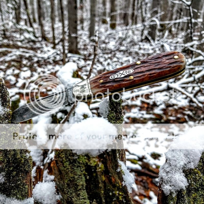 This was the one that caused my heart to skip a beat or two and love traditionals in 2006. Though it is not the original, but a replacement as I had handed over the original to my step son three years ago and found I couldn't live without her. This was the model that got me to lay down my Benchmades and Kershaws. Then, I went to my first Case show at an Ace Hardware Master Dealer about five minutes from my home and that was the nail in the coffin for modern folders. Totin' this one. So, it's back to my roots today.