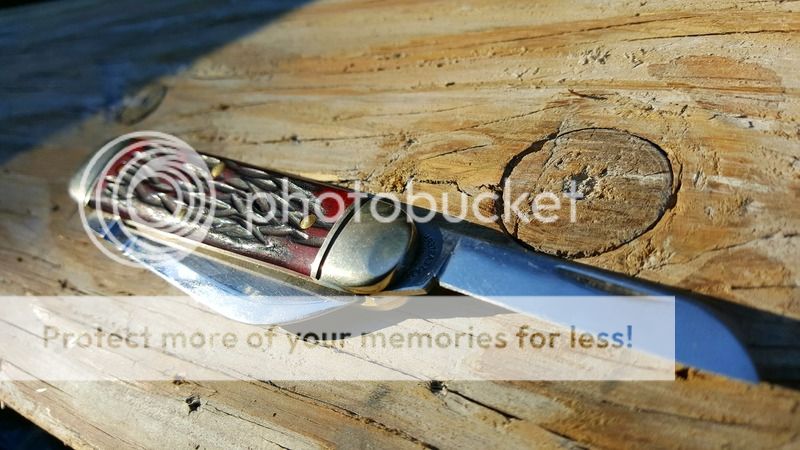Harry, your 73 is really developing some fine character! That beautiful Schmachtenberg Bros looks like horn to me too and I just love that shield!! Interesting stamp on the main blade. Can't quite make it out though