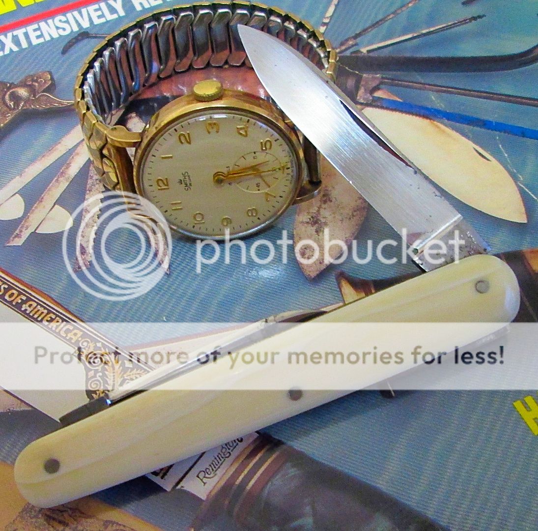 It's a Schrade Grandad's Barlow, the blades are carbon, the bolsters are solid, with deralin handles. I picked it up at a antique store in originial packaging for 30 bucks so it was a good buy IMHOI.N.F.K., That's a nice looking Barlow! I'm assuming it's Schrade from what I can see of the tang stamp. Anything else you can tell me about it?