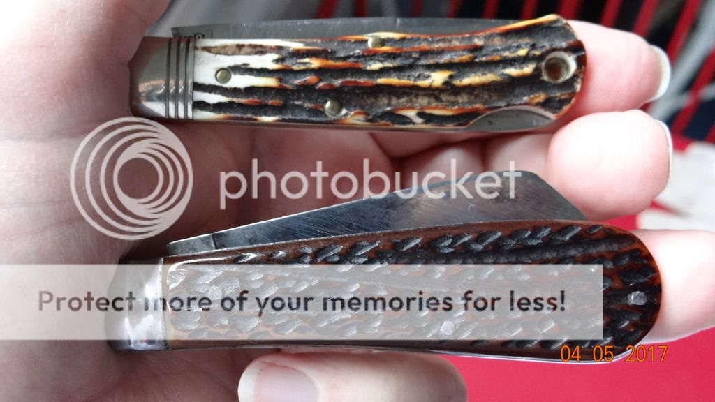 Dark and rainy here, so this is a recycled image. Case-Bose Wharncliff lock-back whittler and a Mammoth Ivory City Knife from Eldon Talley.