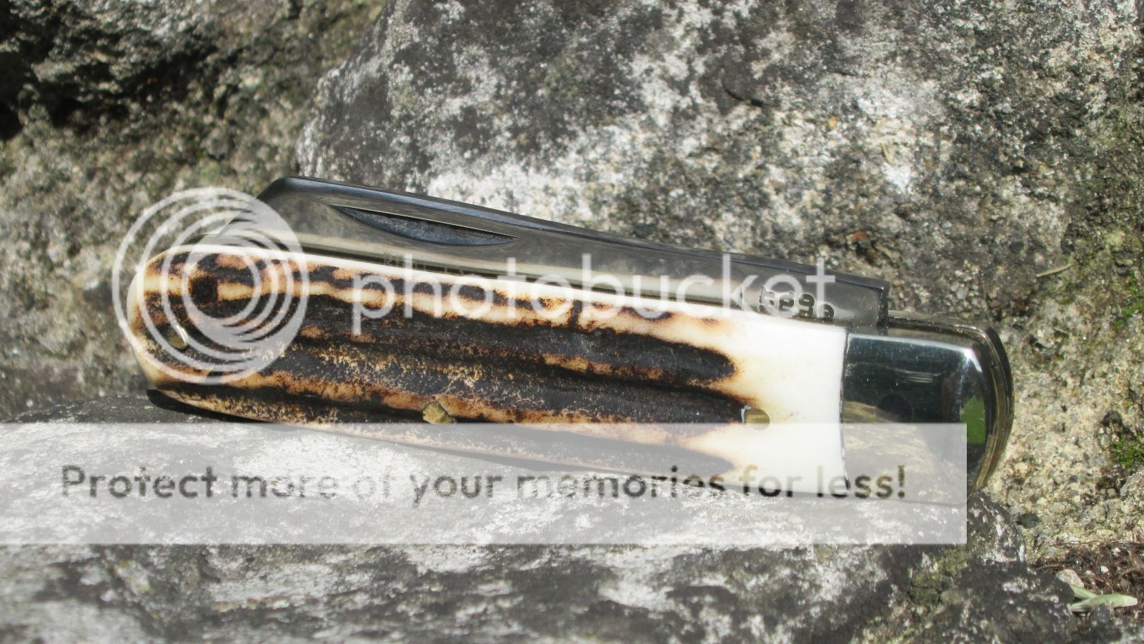 Thanks Harry, ya I have. It hasn't been out of my pocket since I received it. The 72 and 73 frame is just a great size for me. It has been used as a "steak knife" the past couple of days and the patina is just looking amazing. I just ran it on my strop and it's back to shaving sharp. I catch my self just grabbing it and admiring the stag covers constantly.Great picture Taylor . Have you bonded with that 73 Stag yet ?????? Who turned the File into a pretty nice Fixed Blade ???? It looks like it would fit a hand pretty good .
