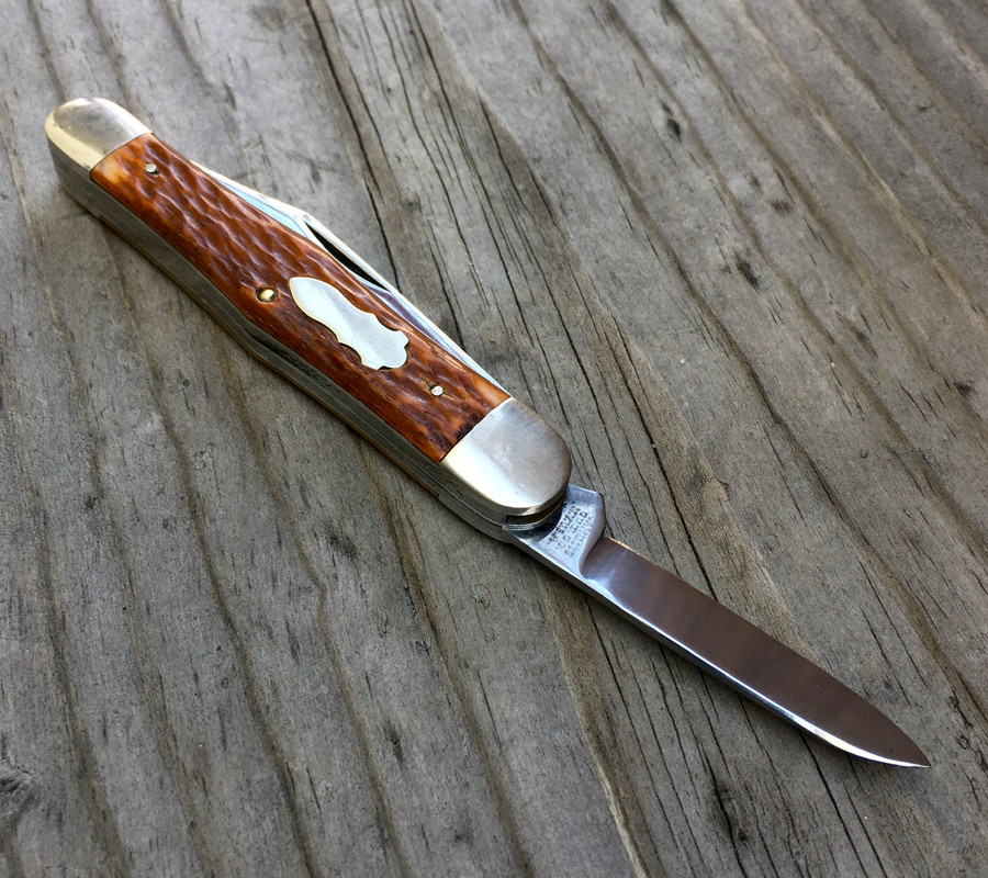 Really liking this 72 pattern a lot. Perfect size and blade combo. Feels great in hand. Been toting it the last 10 days or so and still haven’t cut a thing with it but have also been rotating my other user knives along with it for my cutting needs. It’s hard to find old bone ones especially unused like this one so the hunt is on for a couple or a dozen more user 72’s. Any of you folks here familiar with this Camillus stamp and can help me date it? Thanks!