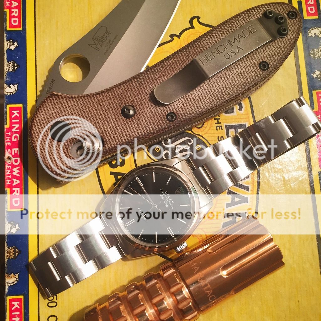 I always like seeing watch and knife pics, so one for just Benchmade knives and watches is in order. I'll start.