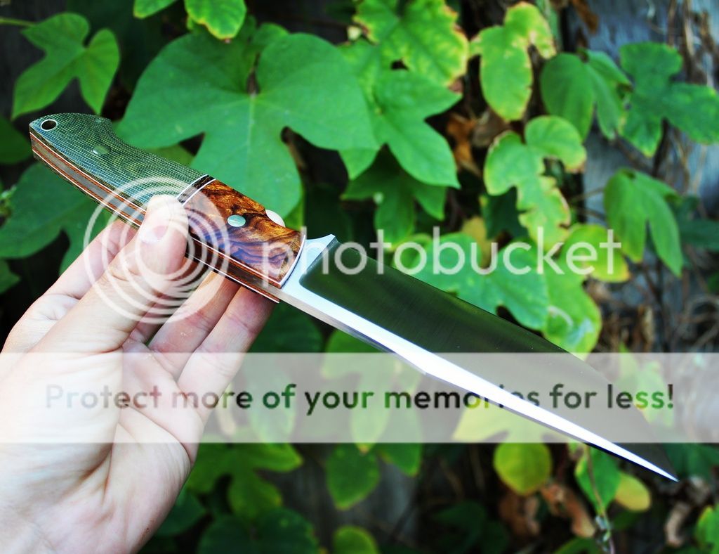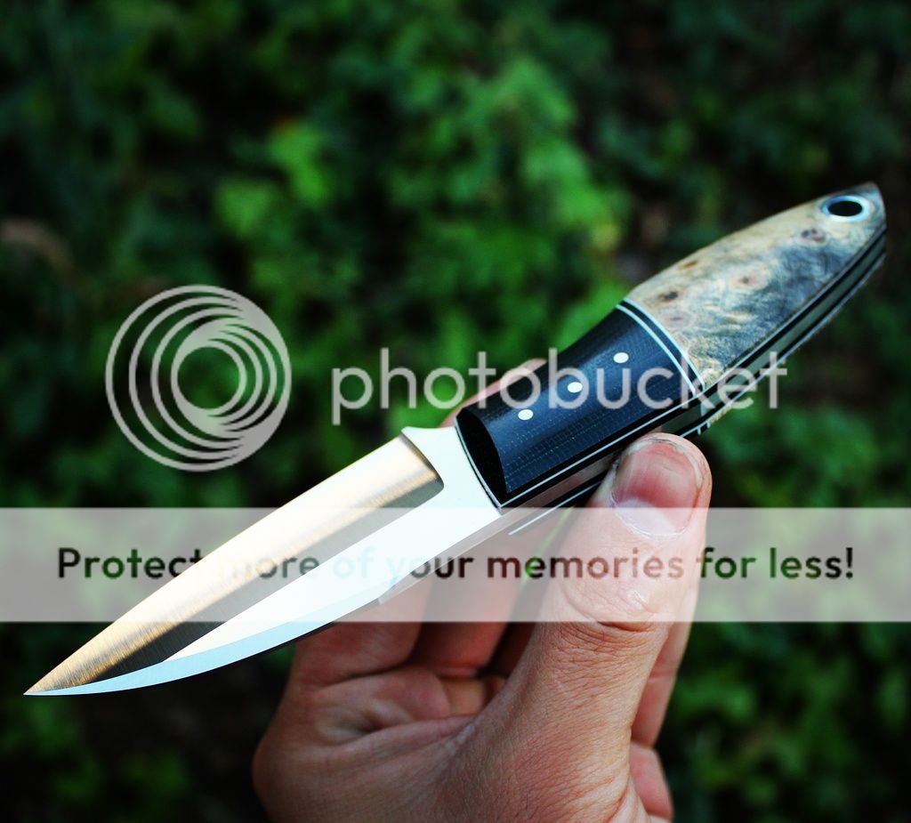 Lucky kid that's a sweet little knifeGot 2 finished up this week. The first one is a polished bird and trout in cpm154. It's 61 Rc with curly maple handles. The second is a 440c skinner I'm trying out. It's a graduation present for a little cousin of mine whose school colors are white and blue. I'm going to try a CA finish on the micarta because I can't keep it clean to save my life.![]()
