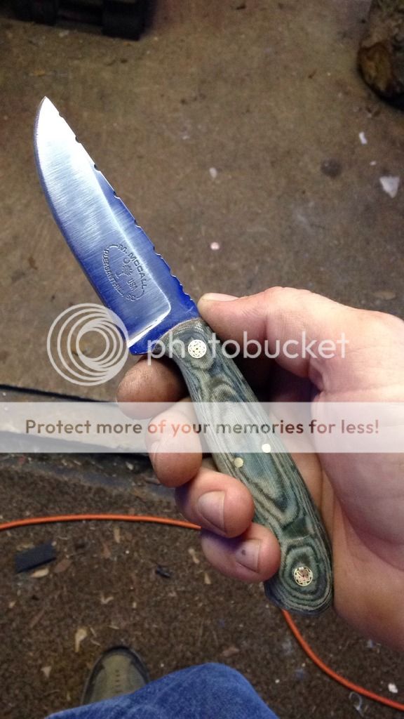 Thanks Valknut. Well I botched the glue job on the handle. Need a slower glue. Had a hard time getting the pins in once the glue was on. Forgot to tape the blade and have some scratches right at the front of the handle on the blade. Got too ambitious with some file work on the spine I don't even want to post an image of but its a gift for a friend sooo.... I need to get better a shaping handles. As far as the grit m, the handle is up to 400 cork and didn't want to go too fine as I know it will be used in the field probably quite frequently in Oregon so didn't want it like glass. It feels good in your hand when wet.