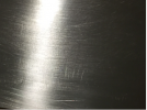 Blade finish. Because of the thin steel there is significant warpage/curvature from spine to edge, making it virtually impossible to really get in there with finer grits on the grinder to remove deeper scratches: