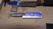 I like that knife , but if it is mine I will shape front of scale to follow plunge line .I think that will look better that way ?This one is almost done. Just needs to be sharpened. The wife's is similar but with red oak scales. I'll post that one up later