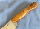 300mm/12" edge, 75mm/3" width, 415mm/16.3" OAL, 1mm/0.04" thickness, 260 grams (9.2oz) total weight. Urunday hardwood and three corby bolts. Sandvik 1095 steel @ 60RC