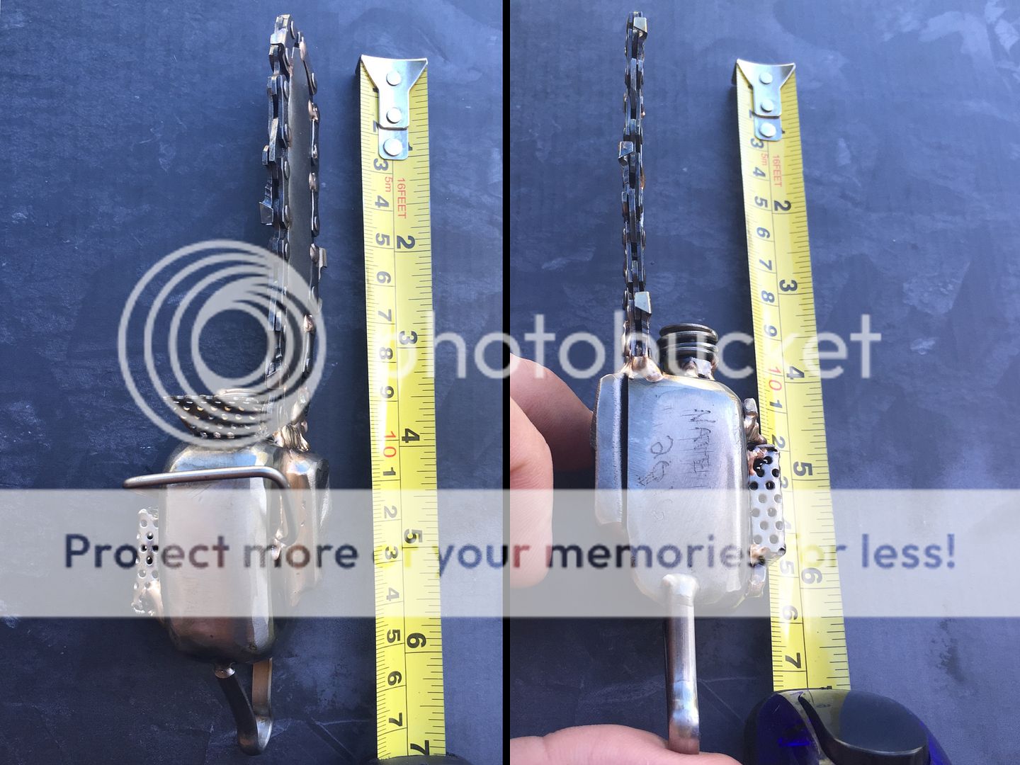 $75.00 A Custom Made mini - chainsaw - it has to be over a pound - a heavy little sucker. I was going to hang from my rearview window but I think its too heavy