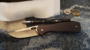 couple of not put into production 345s, with aluminum screw together scales. really great solid knives. y'all who like the vantage should jump on these and the paperstone models, Maks got before they are gone. also Mike gave me a Buck pen and some other goodies. thank you Sir.