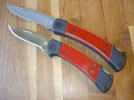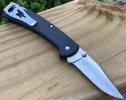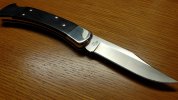 Buck 112 just came in late yesterday; oak handles, 5160 steel with a drop point blade. Cool knife, I didn’t have any knife with any of those three features. Knife is nice and tight and nicely centered, nicely fit and finished - the one negative thing I will say, for a blade that didn’t need a nail nick at all they sure cut the Grand Canyon in there! OH