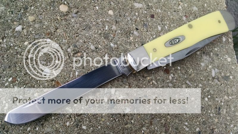 I've been carrying my Case full size Trapper a lot more lately and use the spey blade the most. I decided to turn it into a d spear point as much as the mail nick allows. A few minutes at the grinder and a few more at the buffing wheel and I had a really long spear blade. The change is subtle but I really like it. Almost just as importantly this to change really flow when the blade is closed. The tip of the spey used to stick up pretty abruptly but now it eases into the handle like an old man into a nice warm bath...