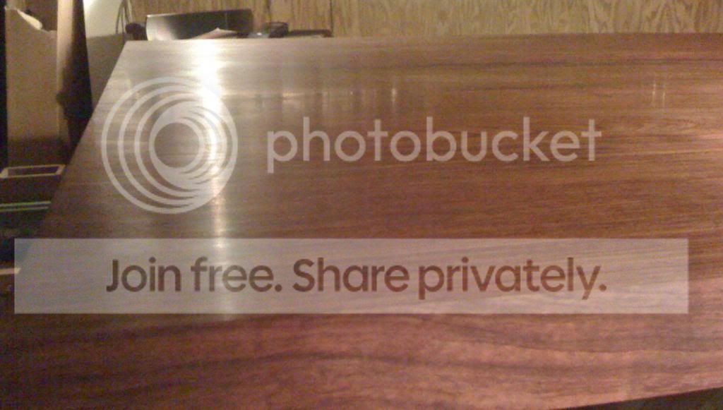 Here you go : the wood surface is cut so clean, flat and accurate it has a reflection to it even before any finish is put on. There is no finish on this table top , just bare wood right off the hand plane (never any sand paper) and no finish on the end grain on the same table up on it's end to plane the ends of the table.