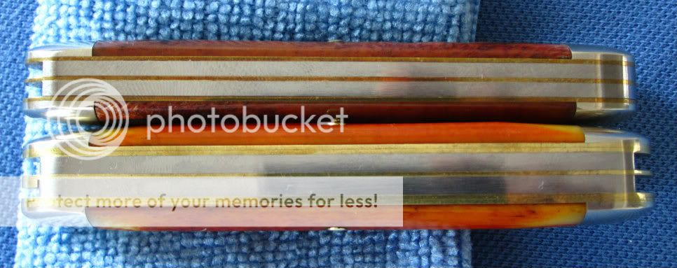 The retro-reproduction should have carbon steel blades, old-school standard implement (spear blade, awl, cap lifter screw driver, old style can opener)implements, brown jigged bone scales, bolsters with lines (I'm blanking on the term) and a bail.