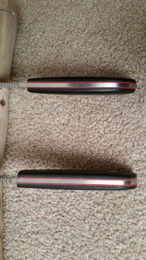 Both of these knives are in as-new condition... never carried or sharpened. Both are 1/8" S30V with a near-mirror stone wash finish. Both are Black micarta with red pinstripes. Both include factory kydex. Oh, and both are very, very sharp! $125 each or $225 for both. These would make a great set for processing game! These are both extremely nice knives! Great quality and finish work... And did I mention, they're scary sharp! First "I'll take it" rules. I'll pick up PP fees and US shipping. Thanks for looking!