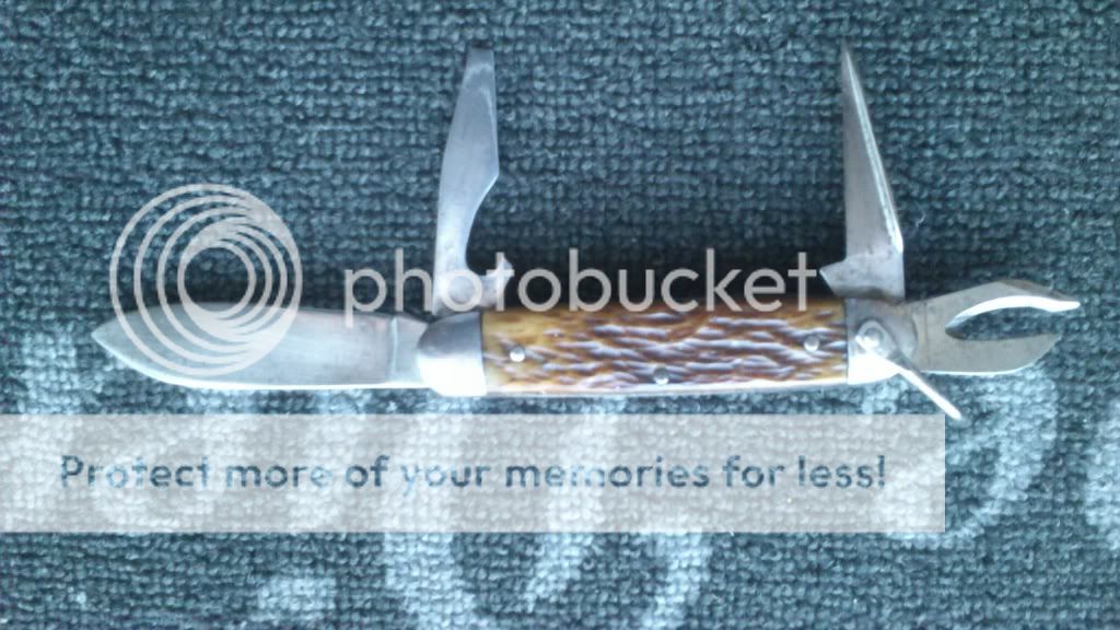 Kastor/Camillus made them for Sears & Roebuck with the Made in USA stamp from 1924-1965, going by your can opener I with a nail nick instead of a post I would guess 60's but that is only a guess, I have one and it has the three piece can opener, they are nice knives, yours looks like it is in good condition, the bone on one side of mine is missing a chunk and my can opener is only 1/2 there, blade takes a wicked edge, Nice find.