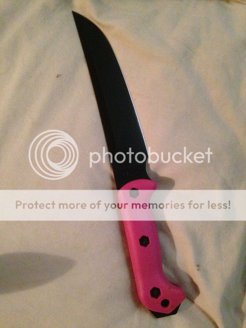 The logo is the one thing I would change about the knife. I do like the coating, the handle color and the sheath however.