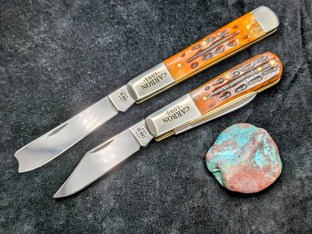 Okay. I take back those 1970's bad things I was thinking about you. Heh-Heh! This explains it perfectly (if one can keep up with how fast those two are talking). Thanks a bunch. Now someone needs to scour the web and update all of those old charts. Umm, nope, not me.YES... you are correct... the new tang stamp for 2020 going forward.... if it is like Case's other stamps, the lightning S denotes stainless steel... this one had the rounded S, because it's CV steel.