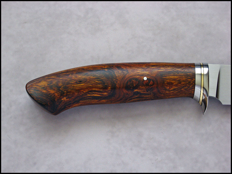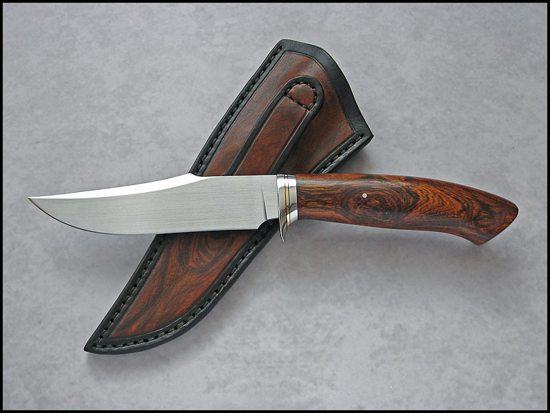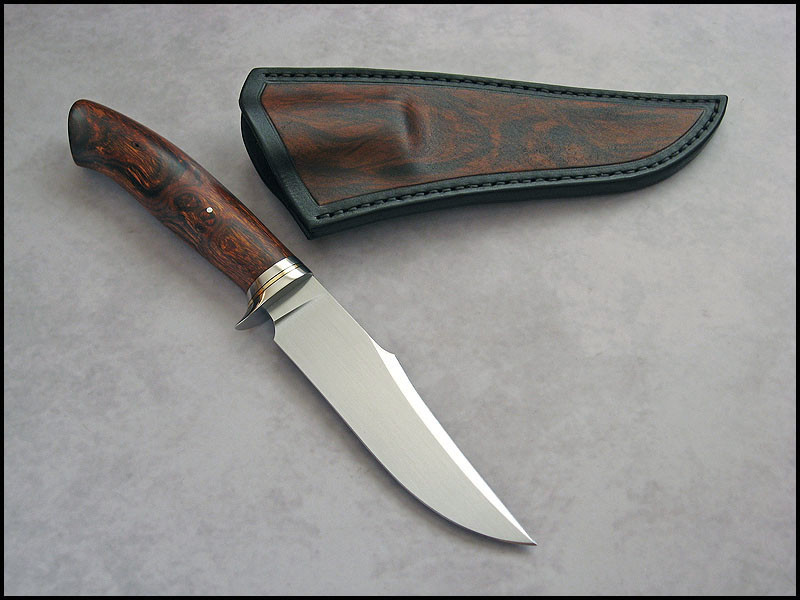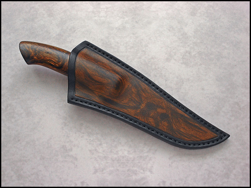 This is Wilk, for sale. steel - D2 / 3.8 mm [0.150"] length - 273 mm [10.748"] blade - 140 mm [5.512"] handle - stainless steel, black fiber, brass, Ironwood sheath - leather Price - $420 plus $11 International Priority Mail SOLD
