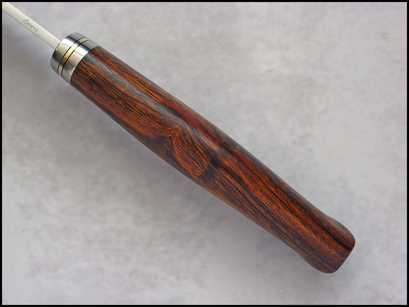 Bona The Art of Harmony Feedback: +31 / =0 / -0 Joined Apr 27, 2006 Messages 1,158 Jan 11, 2015 #1 This is Wilk, for sale. steel - D2 / 3.8 mm [0.150"] length - 273 mm [10.748"] blade - 140 mm [5.512"] handle - stainless steel, black fiber, brass, Ironwood sheath - leather Price - $420 plus $11 International Priority Mail SOLD Last edited: Jan 12, 2015