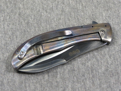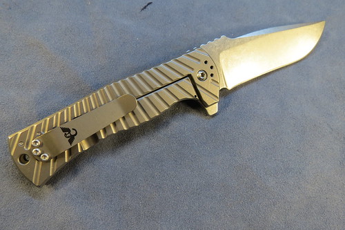 First up is a Will MOON MK 6 that i received in a trade about a week or two ago .the knife is in a great condition has been carried once the put back into the maxpedition knife case .it hasnt cut a thing manly just taken out to fondel .Now for the spec this knife features ti bolster monolock with micarta handles that has some milling texture it also features a ti pocket clip ,the blade fetures a acid washed CPM-154 blade and has a spanto grind on it with a mirrior edge .the blade spin is also polished .as for the lock up its rock solid both was with a early lockup and the flipping action is great but it does have a very strong detent .heres the photos .