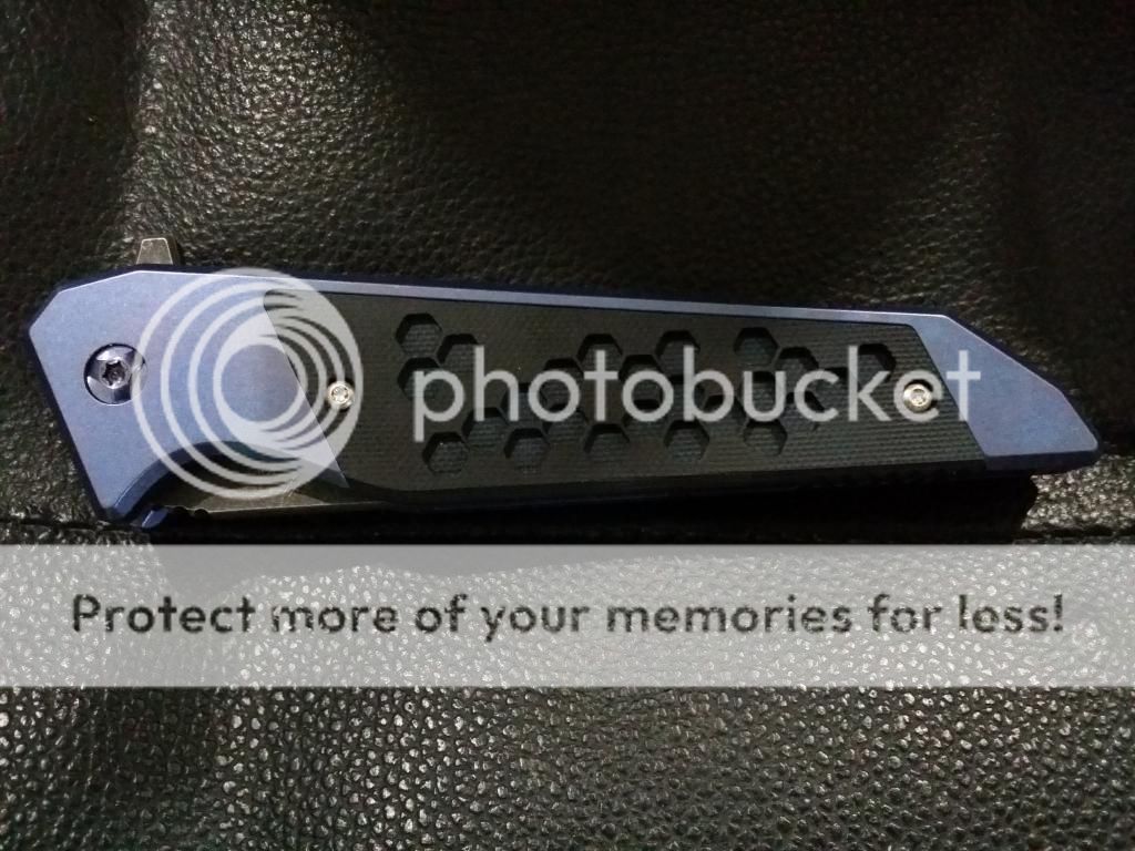 Just got this new from maker. blue/purple anodized titanium with acid washed CPM 154 steel blade. It's an amazing knife. The build quality is remarkable and it shoots out like a rocket. I got my eye on a grail though so need quick cash for it. Looking to get $OLD!