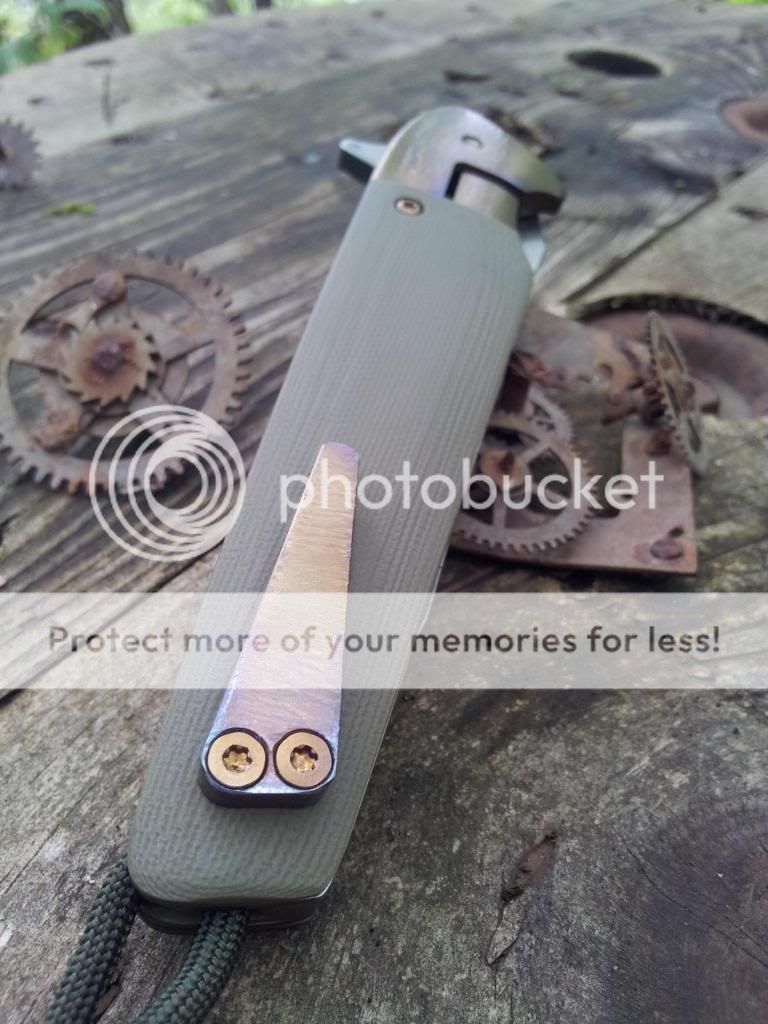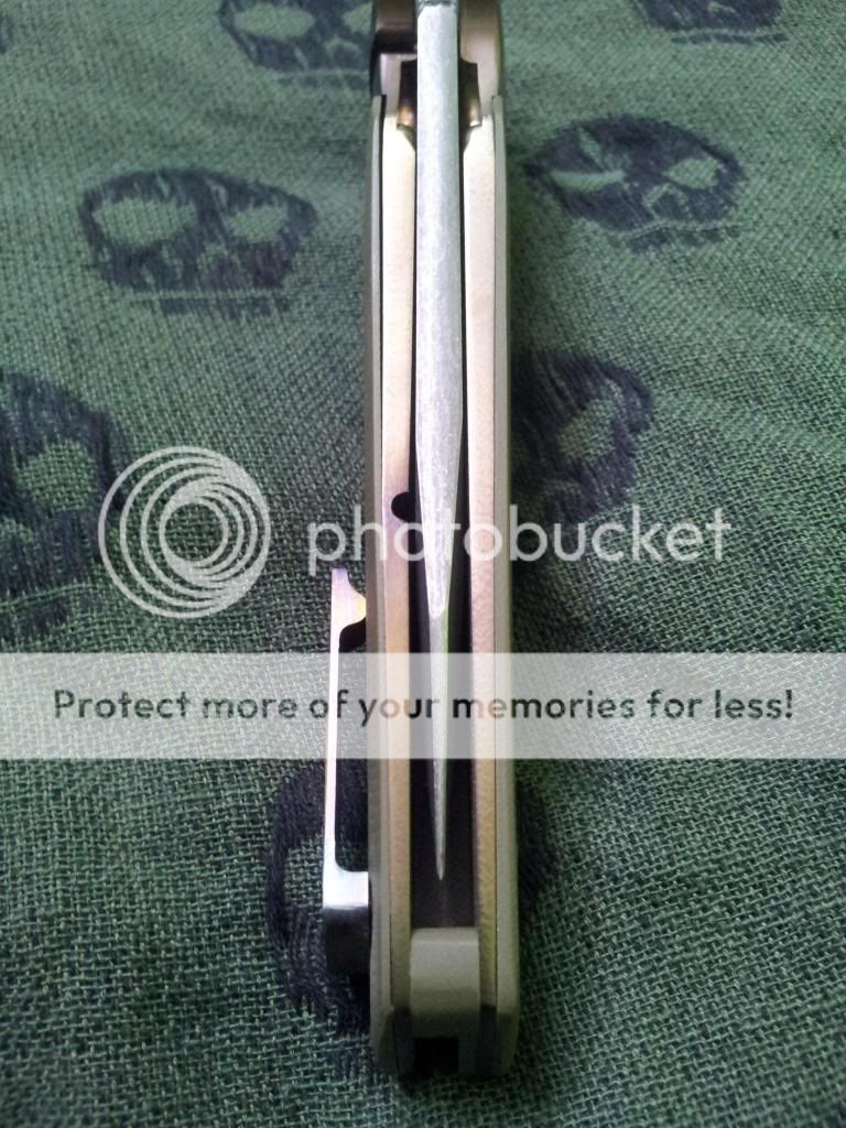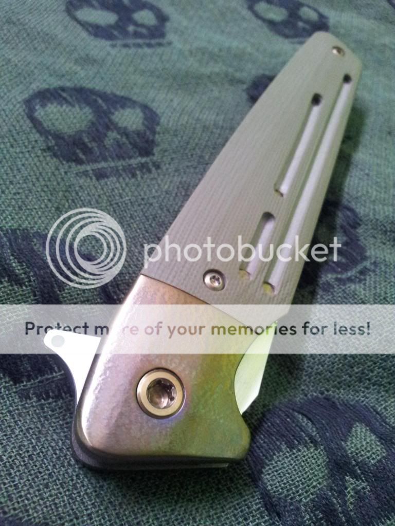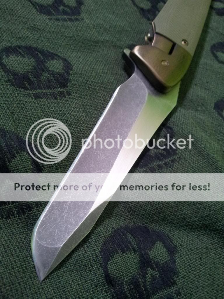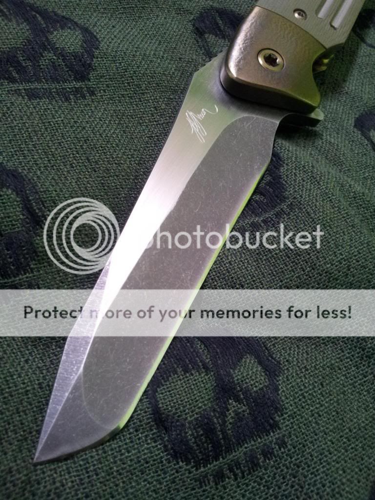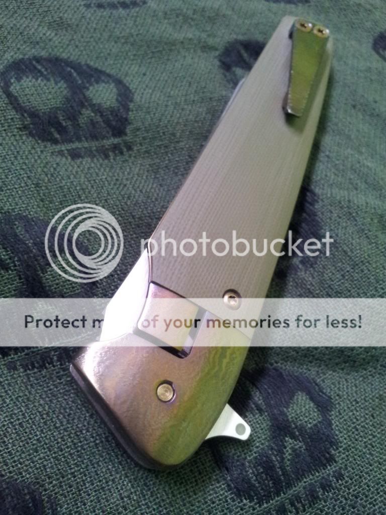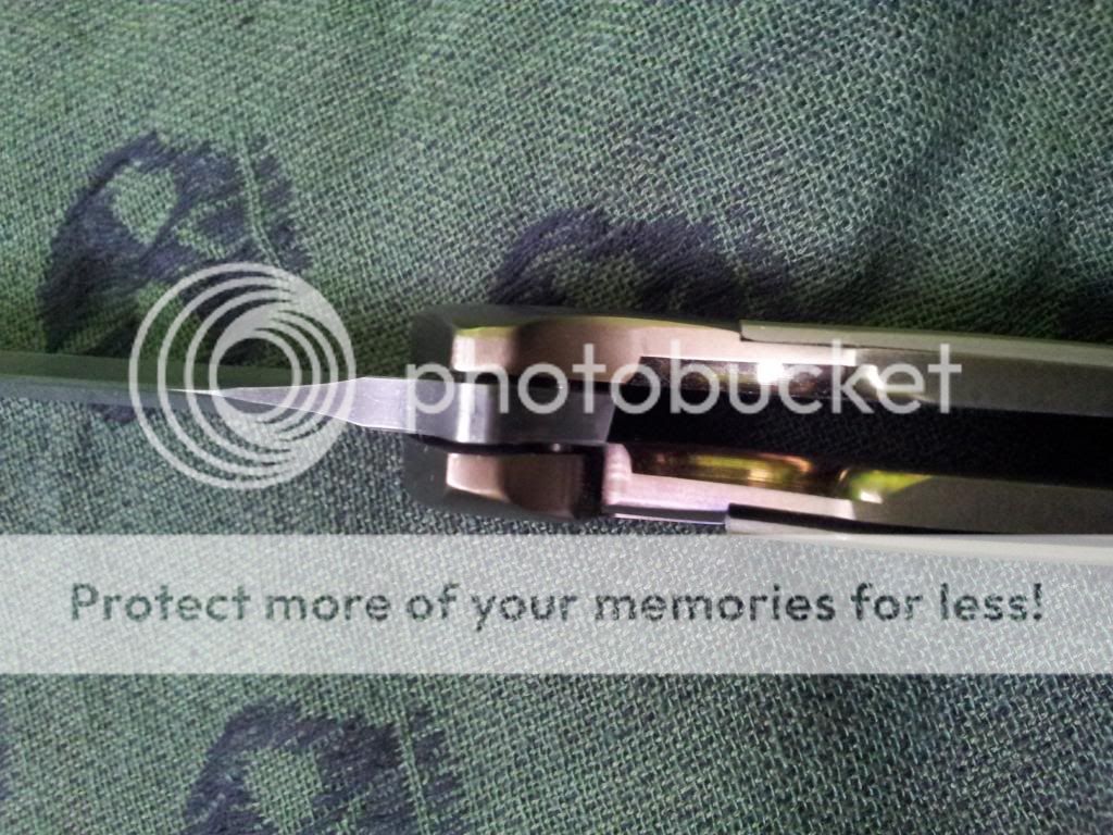 Other than that, the knife is in excellent condition. The flipping action is very nice, and it hasn't even broken in all the way yet. Lock up is insanely early. Centering is great. The Orange peeling on the bolsters is absolutely gorgeous.