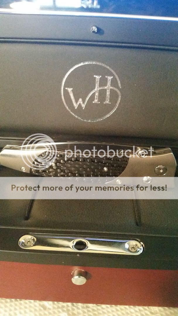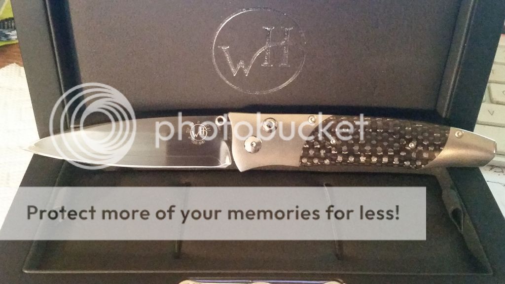 Excellent condition, has been pocketed and used to cut a few envelops at the office, great factory edge (zdp laminate). There are some very small swirls on the blade (very small), acquired through a trade from another BF member. Extremely lightweight and an excellent example of William Henry quality. No trades.