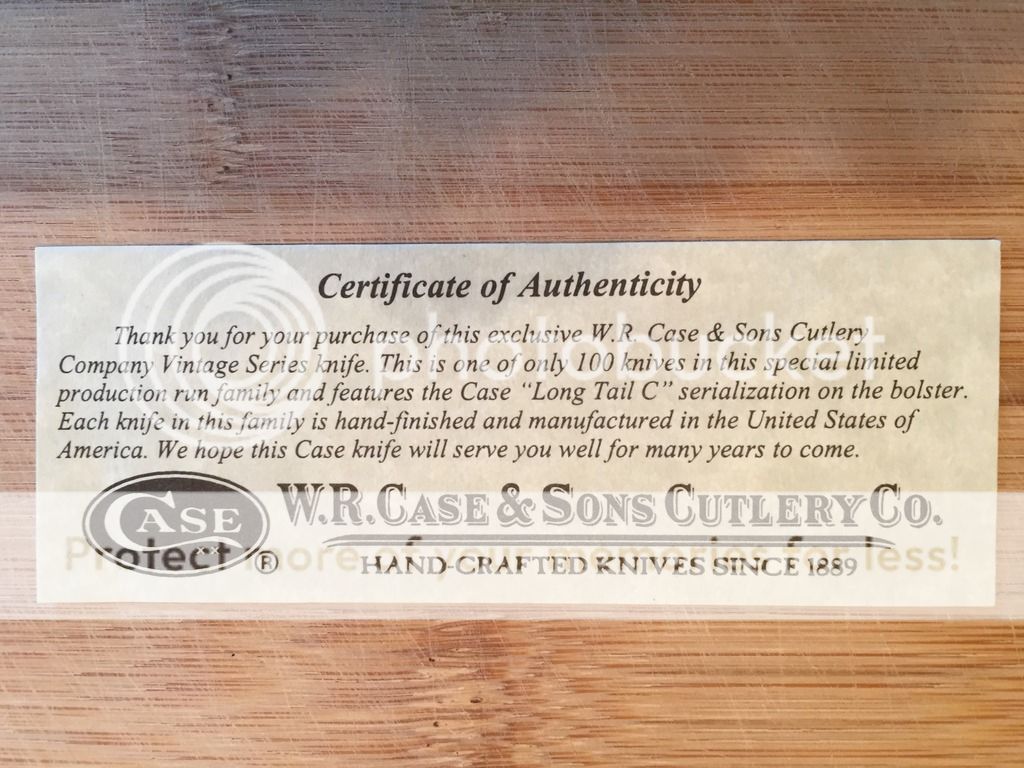 6. Case Copperhead (6249W SS) Blue bone with Wharncliffe main. Has a very slight gap between backspring and scale. SOLD