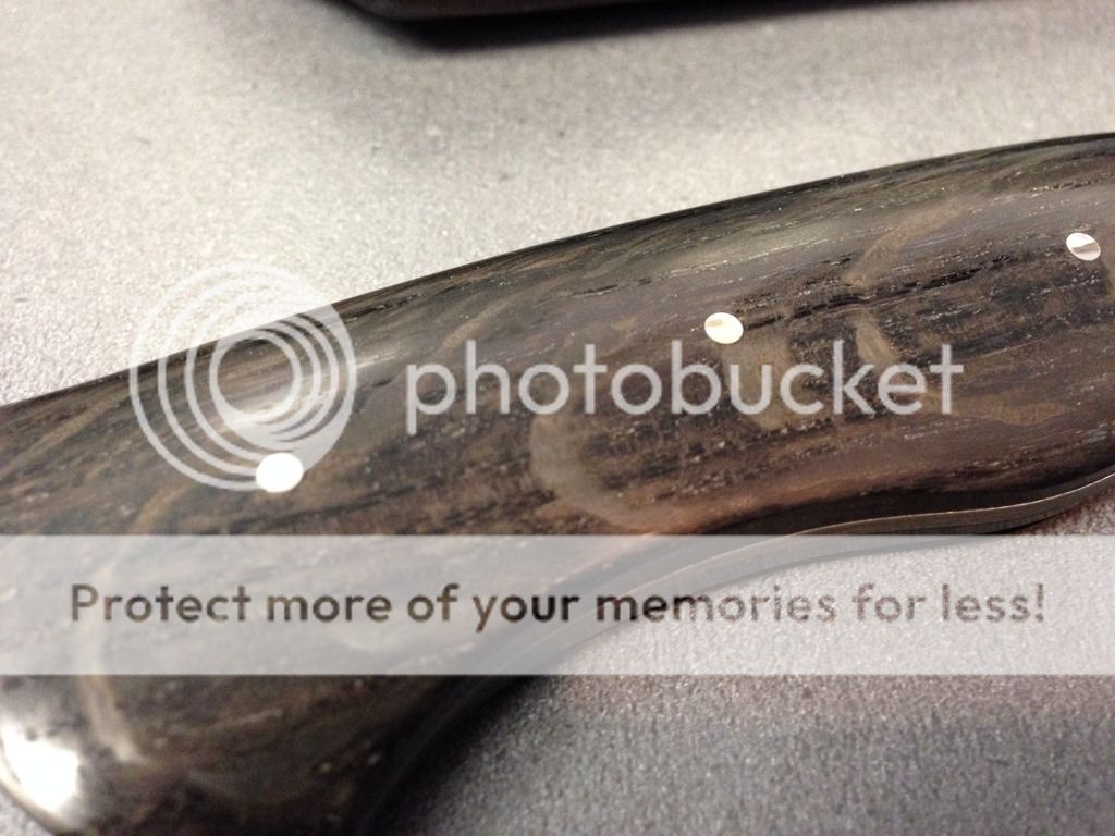 Handles are bog oak scales, which are absolutely amazing to look at! This is a truly one-of-a-kind piece, and there will never be another knife like this, folks! The scales were carbon-dated to be 5460 years old, imported from Europe!!!