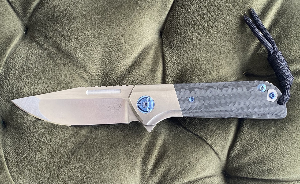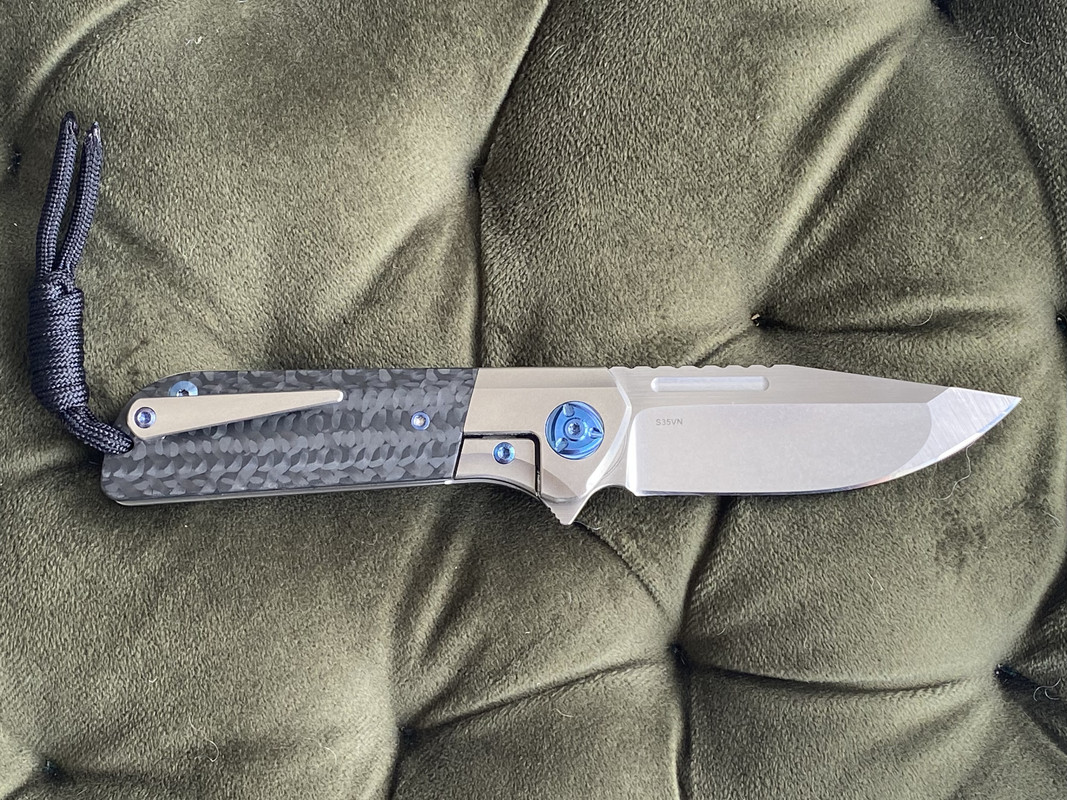 Liong Mah (by Reate) Carbon Fiber Lanny V1. I purchased this off the forum a few weeks ago. Knife shows no signs of use or carry on the blade or handle but has had a razor sharp mirror edge installed by previous owner. Super “drop shutty” action with no blade play or issues. I guarantee you won’t be disappointed with this one. No box or paperwork, just the knife.