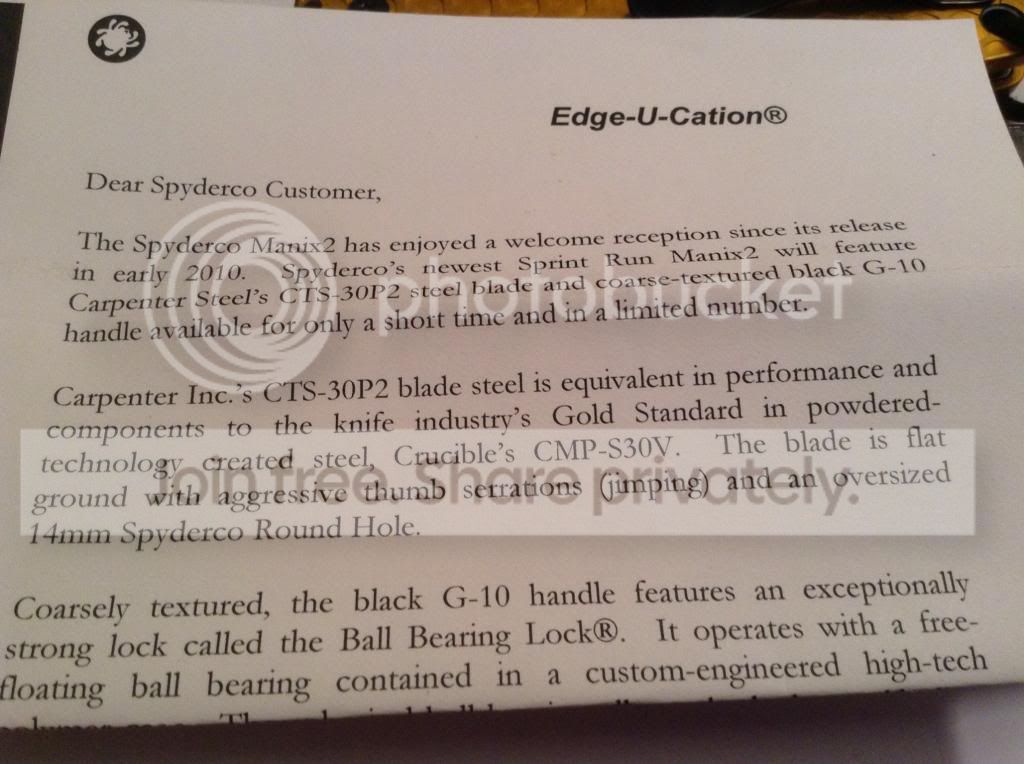 The title says it all...I have a BNIB Spyderco Manix 2 Sprint Run of early 2010 which features carpenter steel CTS-30P2 with Coarse textured black G10. What sets this Manix apart from others it's the coarse G10...you gotta hold it to appreciate it.