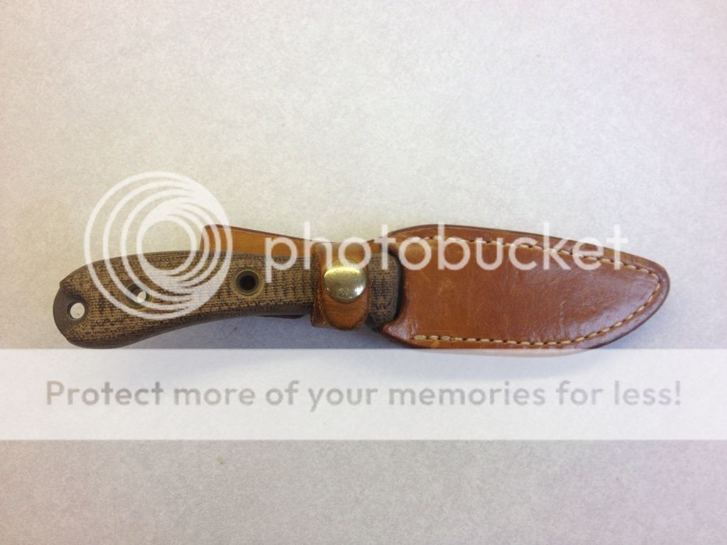 3. Swamp Rat Rodent Solution with sheath - SOLD - Stripped with tan handles - Includes a nice Armorall leather sheath which is aging nicely. One of my favorites, but I'm not using this one anymore. Carried and used frequently, but still in fantastic shape. I am the original owner and stripped and sharpened myself. It's been treated well