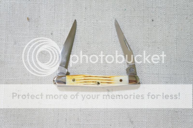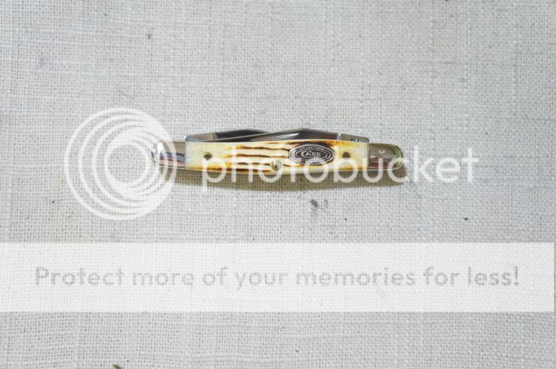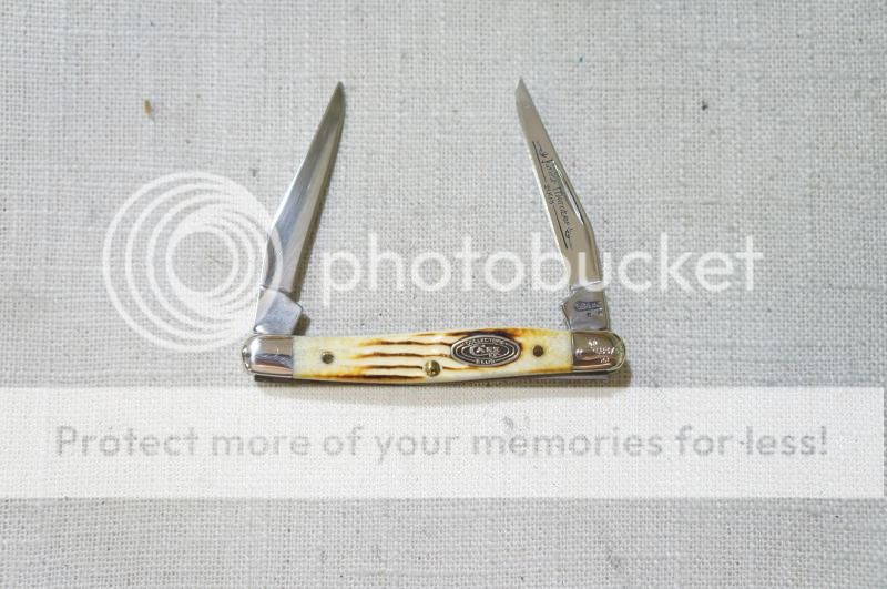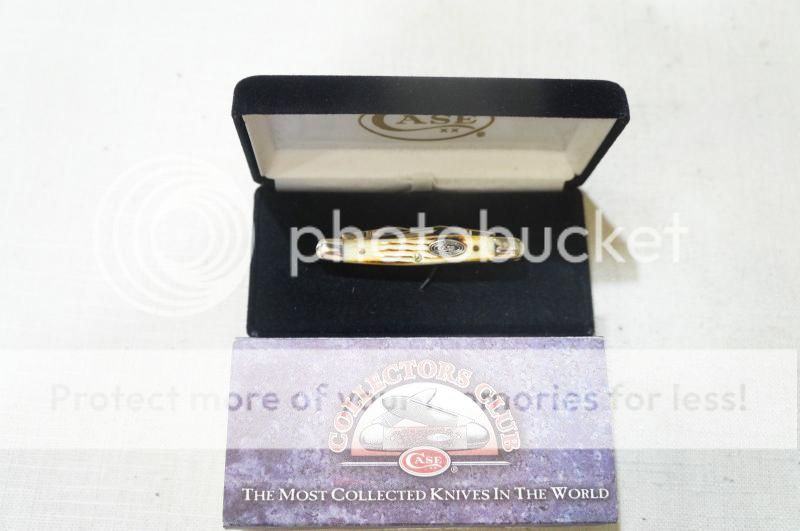 This 2008 Case XX knife features beautiful Burnt Oatmeal Jigged Bone handles,Tru-Sharp Surgical Stainless Steel blades, Master blade etch, with Nickel Silver bolsters, Case Collectors Club shield, pins and liners. The tang stamps read "Case XX USA" with 2 X's (2008) and "Tiny Muskrat USA SS". The serial # L8373 is engraved on the right front bolster with the trademarked Long tail "C". The knife measures 2 3/4" closed and is in mint condition in the original Case XX black velvet jewelers box with sleeve (CA07550). This is a sweet Knife!